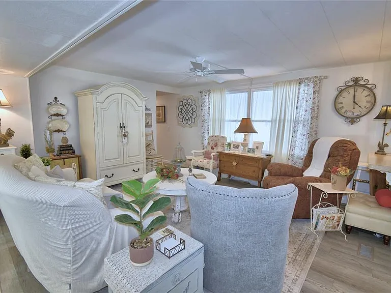 Welcome to Ariana Shores, a sought-after 55+ resident-owned waterfront community in Auburndale. This beautifully maintained 2-bedroom, 2-bath home offers numerous updates and true pride of ownership both inside and out. Luxury vinyl flooring flows throughout the home, creating a bright and cohesive living space. Major improvements include a newer A/C (2022/2023), updated electrical panel, hot water heater 2023, roof coated in 2025, updated tie-downs, new siding (2021/2022), most electrical outlets replaced, and all windows updated in 2021/2022 with the exception of the utility/laundry room. The home is truly move-in ready. This beautiful home is not sold furnished, but most furnishings are negotiable. Residents enjoy excellent community amenities, including a heated pool, shuffleboard courts, and a private boat ramp with direct access to Lake Arietta. Ideally located between Lake Arietta and Lake Ariana, the community provides easy access to both lakes for boating, fishing, and waterfront enjoyment. This property is part of a resident-owned co-op community, and the required $30,000 co-op share is included in the list price. Come experience comfortable, low maintenance living in one of Auburndale’s most desirable lakefront 55+ communities.