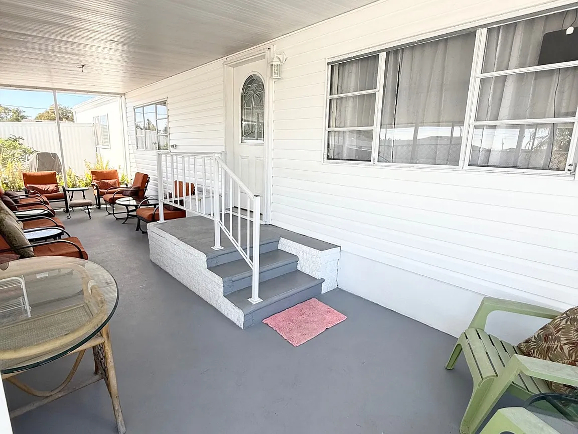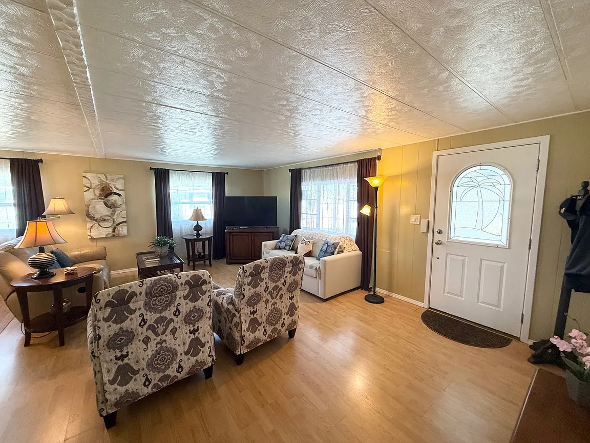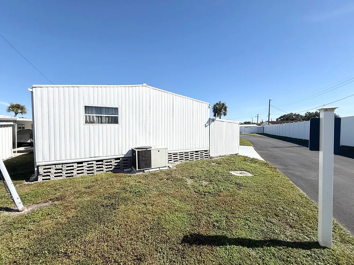 WHAT A DEAL…..LOOK NO FURTHER!!! ANXIOUS TO SELL!! LARGE WELL-MAINTAINED HOME…..Come take a look at this FULLY FURNISHED home on a nice size CORNER LOT located right across the street from the pool!! This home is located in a wonderful 55+ gated community with very friendly neighbors! The lot rent is $635 per month and includes water, lawn mowing and the use of the amenities! Some of the amenities include the use of heated pool, shuffleboard, bingo, billiards, darts, cards and arts and crafts just to name a few! The roof on this home is membrane. The central AC/heat unit has been maintained regularly and runs very efficiently. The electric panel box was updated in 2024 with a new one! The home was tented for termites in 2022. The home has a water filtration system. All of the floors in the home were upgraded with laminate throughout making it easy to clean. There is a detached storage shed located at the back of the home to store your things. Unlike most homes you are able to put completely through the carport/driveway! Attached to the home you will find a large screen room where you can sit and enjoy a cup of coffee or a glass of wine with friends. Enter the home from the screen room and you will notice a large open floor plan. This home would be great for entertaining! The living room is large with the HUGE dining area located just off the living room. This room which is currently the dining room could also make a great 2nd living room/sitting room if you wish. The kitchen is large as well and has lots of cabinet/counter space especially if you enjoy cooking. There is a washer/dryer just off the kitchen so you don’t have to go to the shed to do laundry like in most homes. Notice a second small dining area also located at the other end of the kitchen and just off the living room. Both the living room and dining area have NEWER bay windows allowing plenty of natural light into the home. Toward the back of the home and just off the larger dining area, you will find the main bathroom which has a large walk-in shower. Both bedrooms are located at the very back of the home. They are both large in size with a HUGE Jack & Jill style walk-in closet. The master bathroom is also large and has a large jacuzzi tub with jets for those days your body might be aching. THIS HOME WONT LAST LONG!!!