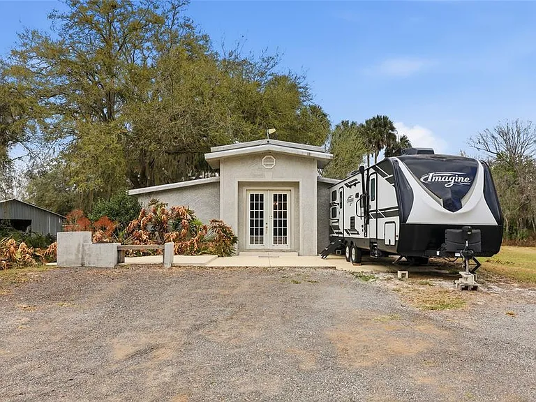 With land as far as the eye can see, this home is made for the explorers, farmers, hunters, and dare devils. Imagine driving down your private driveway into your 10 ACRES past your CORRAL ENCLOSURE featuring your horses or cows and pulling up to your 3 BED, 4 BATH home sprawling across 1,200 SF that has been recently renovated with a STUCCO EXTERIOR. With WHEELCHAIR ACCESS via WOODEN PATIO DECKS along both exterior sides, this home provides both convenience and accessibility. Outside on one side of the home, you’ll find a DETACHED 2 CAR GARAGE with an attached WORKSHOP space – perfect for storing equipment, ATVs, golf carts, etc. To the other side of the property, you’ll find an OVERSIZED BARN where you can keep animals, equipment, or let your imagination lead the way! Right outside the barn, you’ll find a stunning WOODEN GAZEBO with a PIER that crosses over the LARGE POND housing catfish and more! The pier crosses to a landing are at the center of the pond where you can enjoy an evening beneath the stars alongside a fire pit. And with an OUTDOOR BAR/KITCHEN AREA right near an RV HOOKUP STATION, well, the possibilities for hosting or potential INCOME PRODUCTION on this property are endless. The abundance doesn’t stop there — past the home you will find thoughtfully carved and shaded ATV TRAILS, ANIMAL FEEDERS throughout the intentionally unscathed wooded areas that attract wild hogs for HUNTING or deer that graze on the property offering SERENE VIEWS, trees equipped with HUNTING PLATFORMS you can shoot from, and various mature FRUIT TREES: sour oranges, papayas, avocados, and more! On the property as a whole, there are 2 RV METER CONNECTIONS at the moment but, there are capabilities to add additional plugs if needed; you could even charge an ELECTRIC CAR, if that’s in your wheelhouse! There is nothing average about this exceptional piece of land and the rare chance to snag a gem in the heart of Central Florida is here today and gone tomorrow. Will you let this opportunity slip through your fingers? Let’s set up your private tour TODAY!