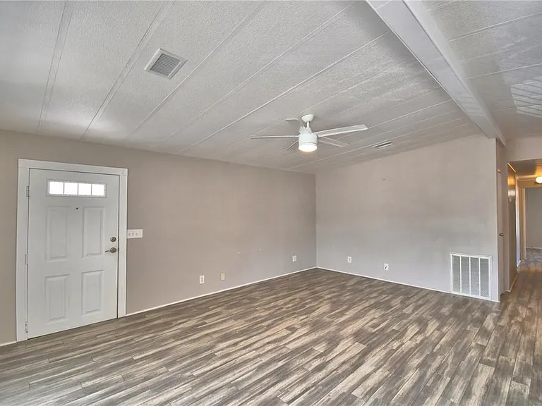 Welcome to this beautifully updated 2-bedroom, 2-bathroom home located in Foxwood Lake Estates, a 55+ community where you own the land. This thoughtfully renovated home offers both comfort and style, along with two attached single-car garages providing plenty of space for vehicles, storage, or hobbies. Inside, you’ll find luxury vinyl plank flooring throughout the home, creating a seamless and modern feel with no carpet. The spacious living room flows easily into the dining area and into a stunning kitchen featuring bright cabinetry, granite countertops, a tile backsplash, and stainless steel appliances. Both bathrooms have been tastefully remodeled with subway tile showers, modern glass doors, and granite-topped vanities, giving them a fresh, spa-inspired look. The home also includes an indoor laundry room, and the washer and dryer—just one year old—will convey with the sale. Major updates provide peace of mind, including a roof replaced in 2024, a new electrical panel and water heater installed in 2024, and an HVAC system that is approximately seven years old with a new compressor added in 2025. Conveniently located near shopping, dining, and everyday amenities, this move-in-ready home offers easy living in a welcoming community.