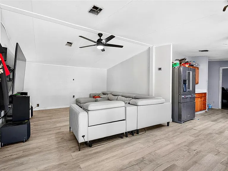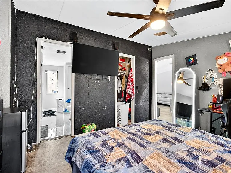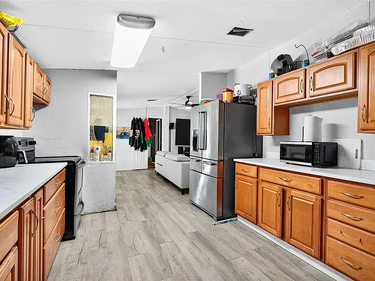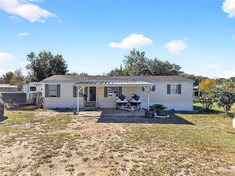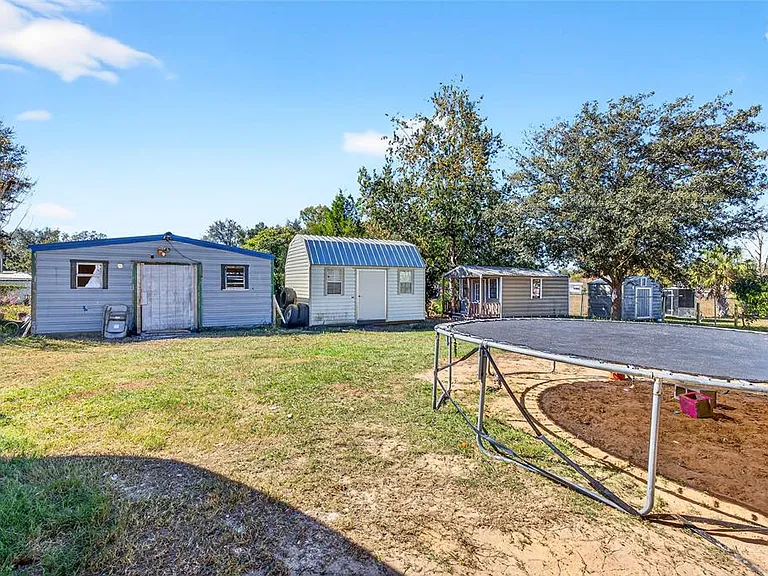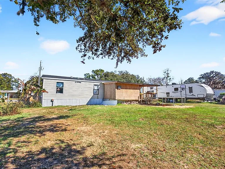 3 Bedroom with an addditional 1 FLex room/ Mother in law room with private entrance off back porch- fenced on 3 sides – Several citrus trees in the back yard- NO HOA – NO FLOOD ZONE- Move in Ready ! Laundry Room inside- Master bedroom has walk in closet- Wooden deck in back with metal roof -Off of a Paved road – Blue storage shed with electric included