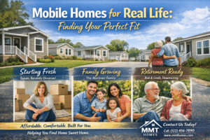 Buying a mobile home is more than just a transaction—it’s a life decision. For many families, retirees, and first-time buyers, it represents stability, affordability, and the dream of homeownership. At MMT Homes, we understand that every buyer has a unique story. Let’s walk through a realistic scenario that shows how we help turn that dream into reality.